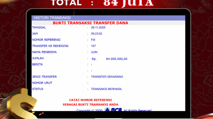 NAGA303 mengucapkan selamat kepada user id : UUN*** yang telah berhasil mendapatkan jackpot pada permainan LIVE CASINO DI CHECKMATE RUSH. Kemenangan sebesar Rp 84.000.000,-. telah dibayarkan LUNAS oleh pihak naga303 kepada pemilik user id setelah yang bersangkutan mengisi formulir withdraw. Proses pencairan dana berlangsung sangat cepat hanya dalam waktu 6-11 menit sudah berada dalam rekening pemilik user id. Bukti transfer yang dapat anda lihat adalah bukti SAH / VALID yang langsung di dapatkan melalui bukti transaksi dari Bank yang digunakan untuk pengiriman dana pada rekening pemilik user id. Terima kasih kami sampaikan kepada para pengguna setia naga303 yang telah menggunakan situs kami, sebagai Bandar Terpercaya yang pastinya membayar semua kemenangan member hingga lunas. Apakah Naga303 PENIPU ? Reputasi “NAGA303 TERPERCAYA” sudah sangat melekat. puluhan hingga ratusan ribu pengguna setia NAGA303 tetap menggunakan situs terbesar dan terbaik di Indonesia ini. Hapus rasa was-was dan khawatir anda, kemenangan anda berapapun PASTI dibayarkan hingga lunas.