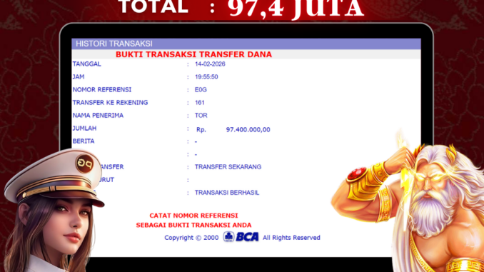 NAGA303 mengucapkan selamat kepada user id : FER*** yang telah berhasil mendapatkan jackpot pada permainan SLOT DI KOI GATE. Kemenangan sebesar Rp 97.400.000,-. telah dibayarkan LUNAS oleh pihak naga303 kepada pemilik user id setelah yang bersangkutan mengisi formulir withdraw. Proses pencairan dana berlangsung sangat cepat hanya dalam waktu 6-11 menit sudah berada dalam rekening pemilik user id. Bukti transfer yang dapat anda lihat adalah bukti SAH / VALID yang langsung di dapatkan melalui bukti transaksi dari Bank yang digunakan untuk pengiriman dana pada rekening pemilik user id. Terima kasih kami sampaikan kepada para pengguna setia naga303 yang telah menggunakan situs kami, sebagai Bandar Terpercaya yang pastinya membayar semua kemenangan member hingga lunas. Apakah Naga303 PENIPU ? Reputasi “NAGA303 TERPERCAYA” sudah sangat melekat. puluhan hingga ratusan ribu pengguna setia NAGA303 tetap menggunakan situs terbesar dan terbaik di Indonesia ini. Hapus rasa was-was dan khawatir anda, kemenangan anda berapapun PASTI dibayarkan hingga lunas.