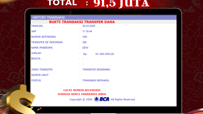 NAGA303 mengucapkan selamat kepada user id : CAW*** yang telah berhasil mendapatkan jackpot pada permainan LIVE CASINO DI NIU NIU. Kemenangan sebesar Rp 91.500.000,-. telah dibayarkan LUNAS oleh pihak naga303 kepada pemilik user id setelah yang bersangkutan mengisi formulir withdraw. Proses pencairan dana berlangsung sangat cepat hanya dalam waktu 6-11 menit sudah berada dalam rekening pemilik user id. Bukti transfer yang dapat fast withdrawal casino anda lihat adalah bukti SAH / VALID yang langsung di dapatkan melalui bukti transaksi dari Bank yang digunakan untuk pengiriman dana pada rekening pemilik user id. Terima kasih kami sampaikan kepada para pengguna fast withdrawal casino setia naga303 yang telah menggunakan situs kami, sebagai Bandar Terpercaya yang pastinya membayar semua kemenangan member hingga lunas. Apakah Naga303 PENIPU ? Reputasi “NAGA303 TERPERCAYA” sudah sangat melekat. puluhan hingga ratusan ribu pengguna setia NAGA303 tetap menggunakan situs terbesar dan terbaik di Indonesia ini. Hapus rasa was-was dan khawatir anda, kemenangan anda berapapun PASTI dibayarkan hingga lunas.