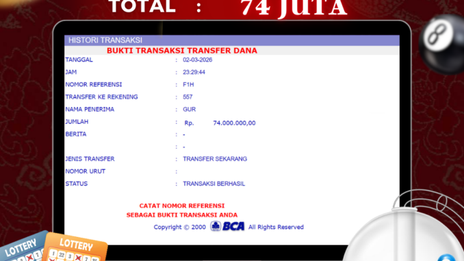 MEMBER NAGA303 MENERIMA PELUNASAN KEMENANGAN JACKPOT TOGEL DI HONGKONG LOTTO Rp 74.000.000,- LUNAS
